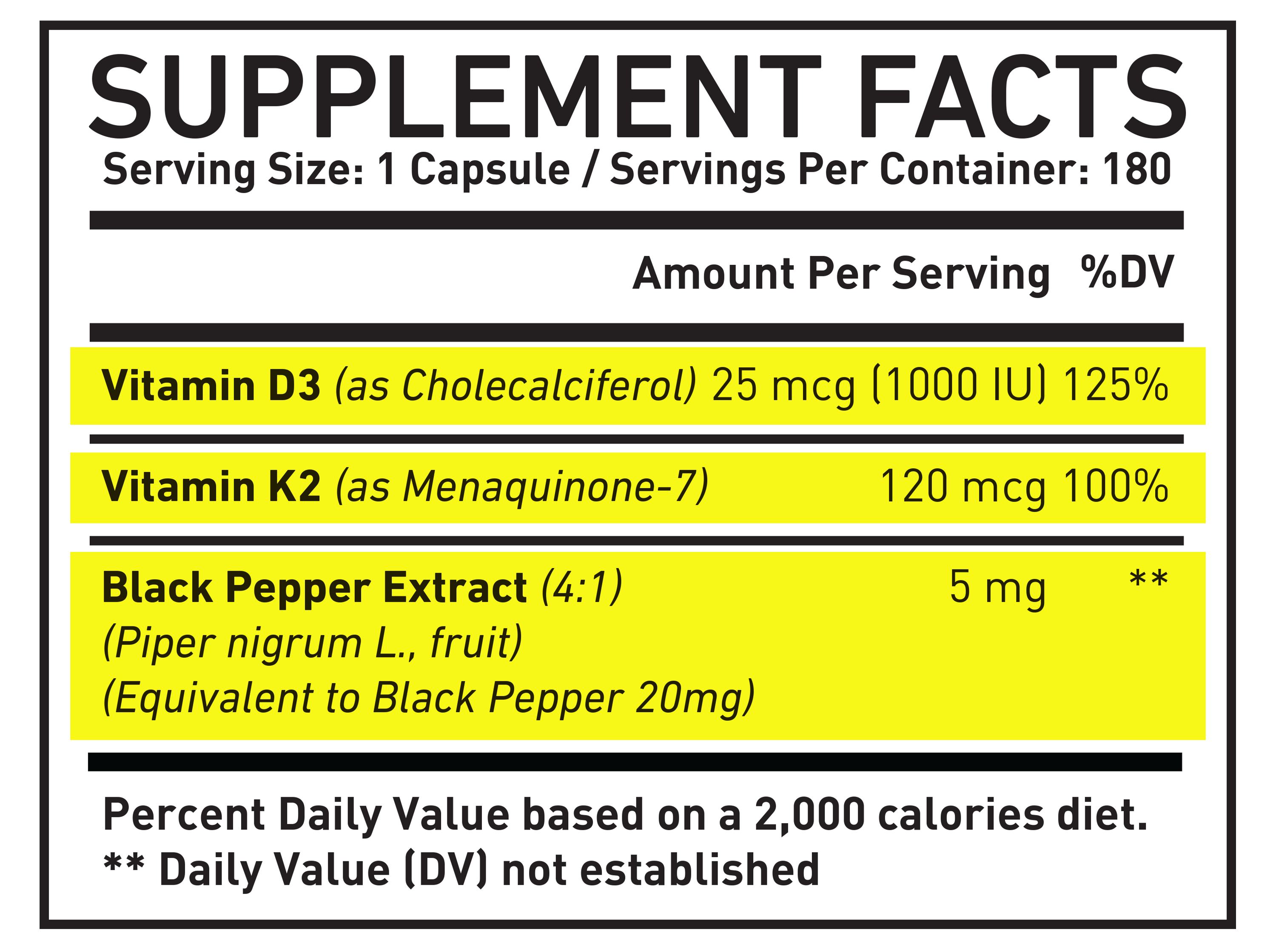The Best K2 Vitamin with D3 Supplement with added Black Pepper for your bone and heart health.